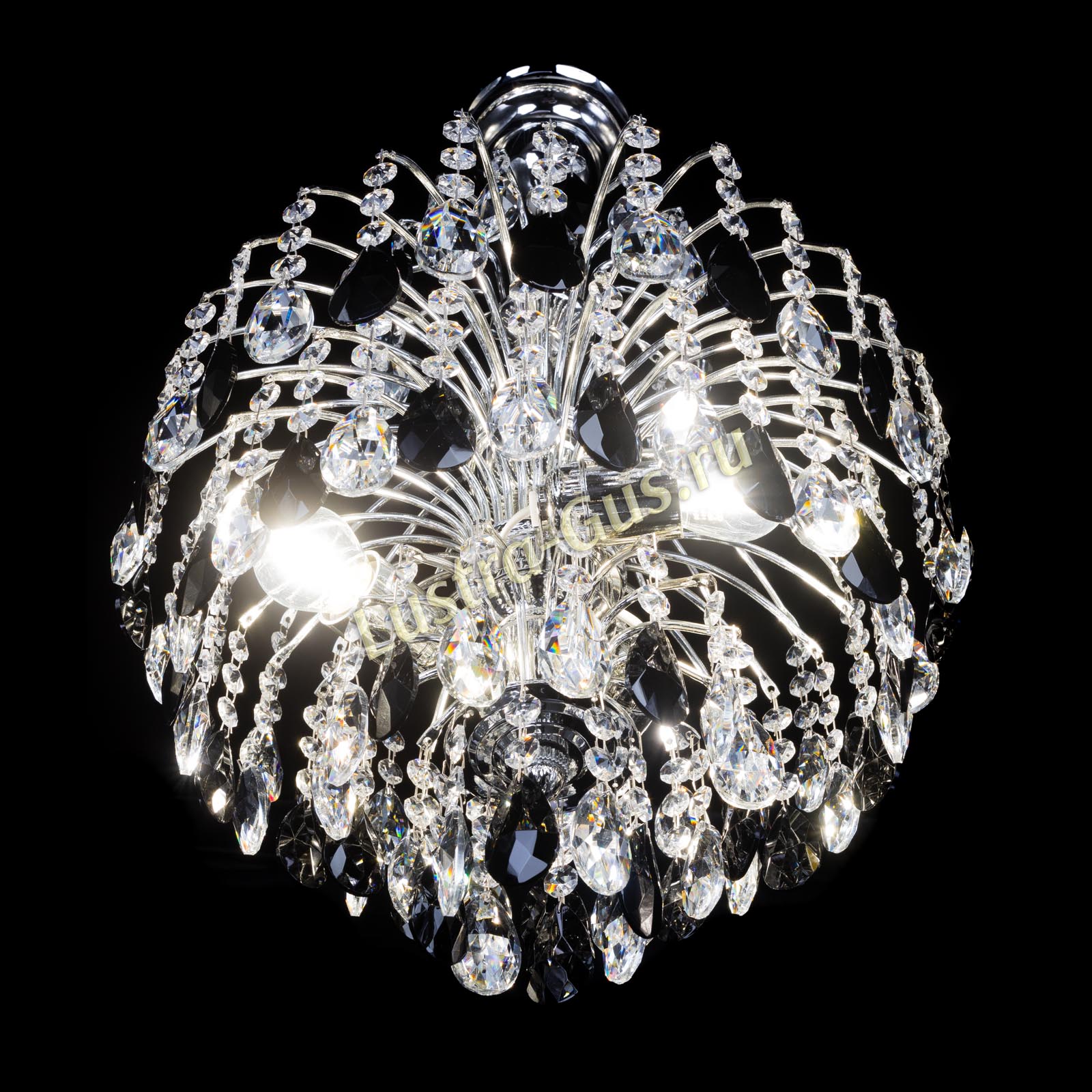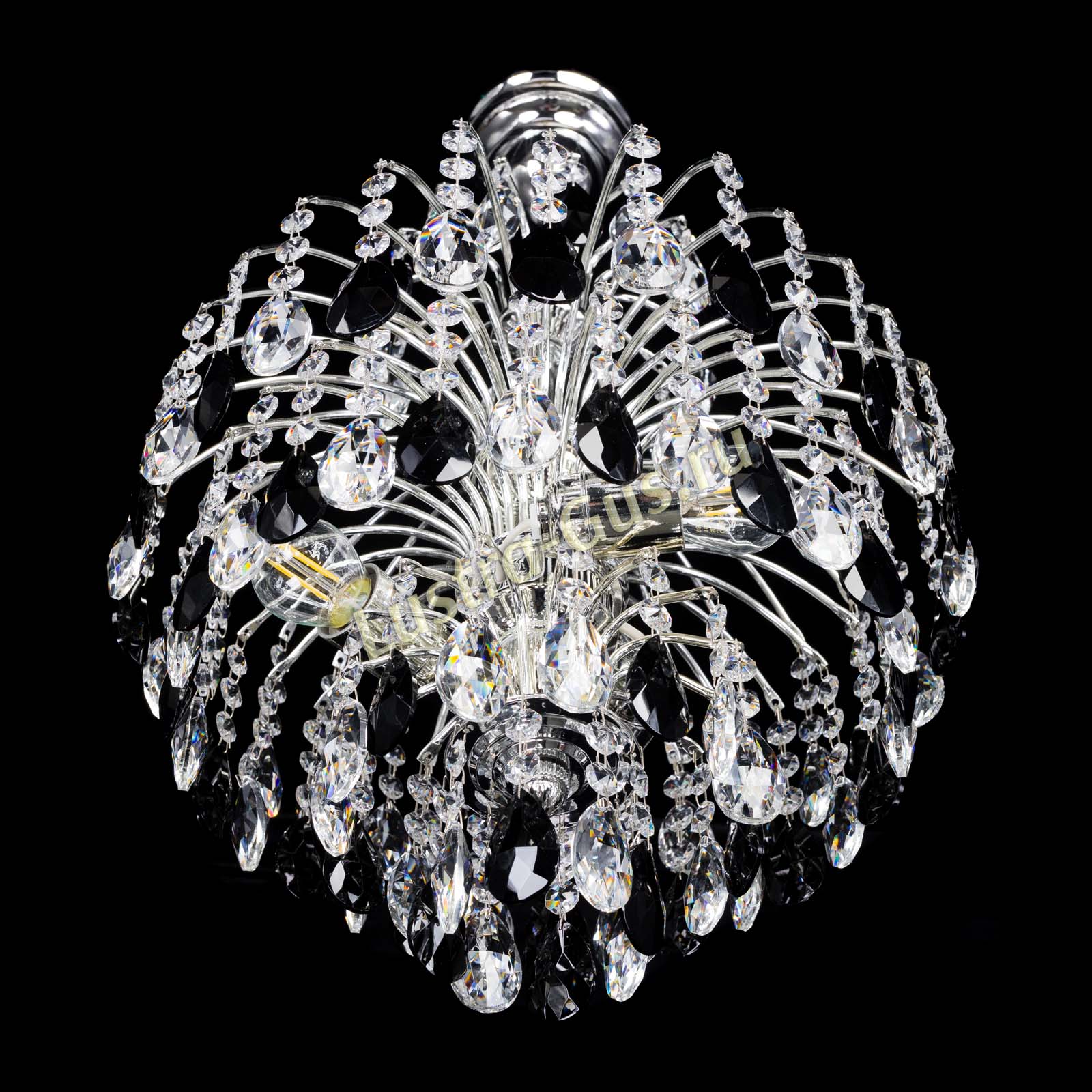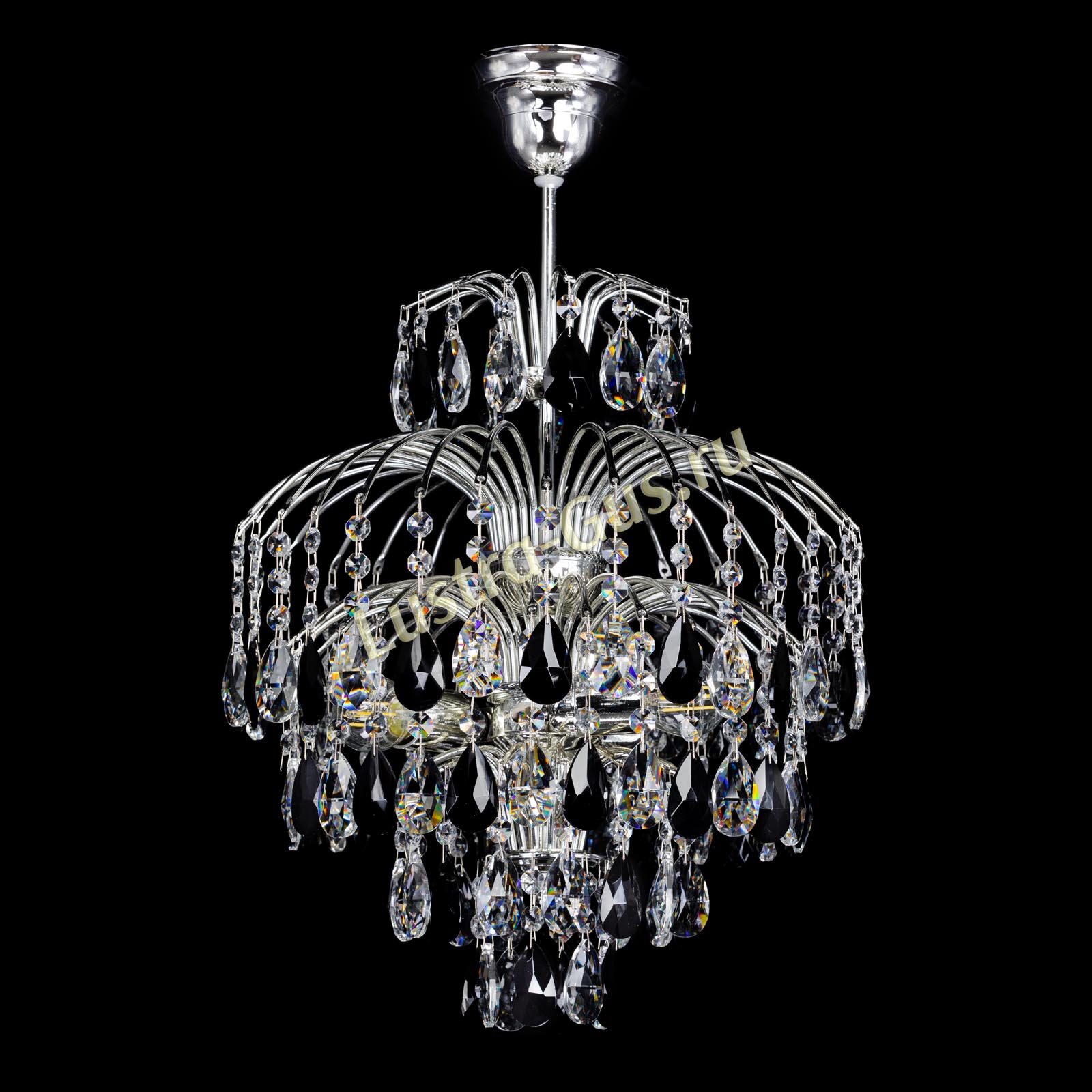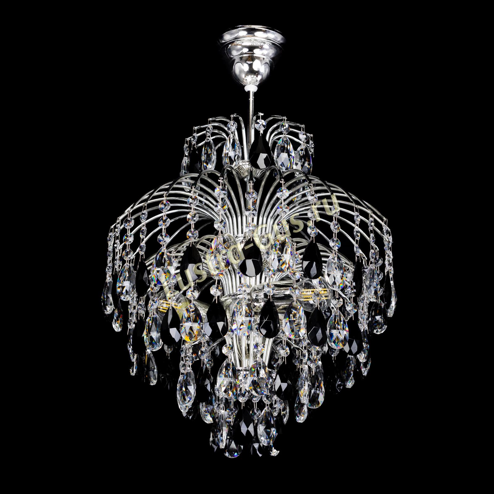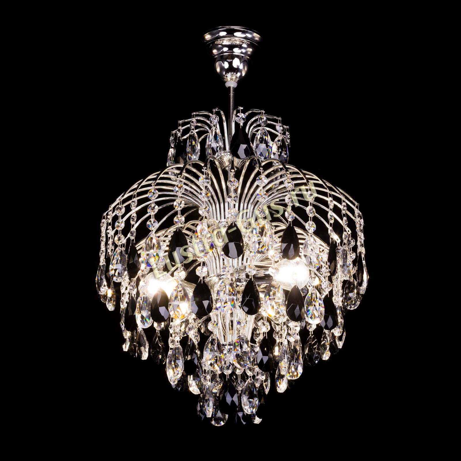 Люстра Хрустальные брызги Журавлик черный сочетает подвески черного цвета и прозрачные подвески, что создает необычную игру света. Она украсит вашу гостиную.