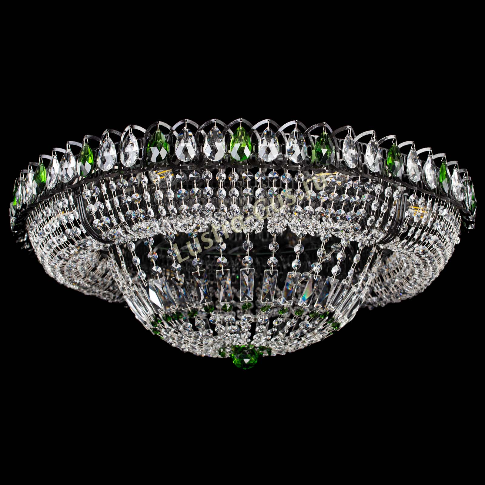 Люстра Кольцо Классика №8 Черная с зелеными подвесками в Новокузнецке